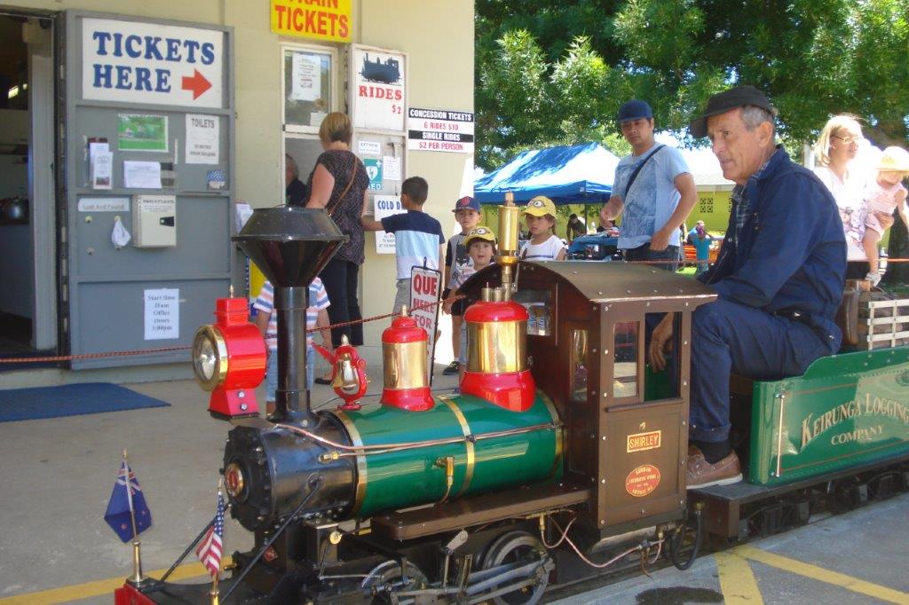 Enjoy the smell, sights and sounds of miniature live Steam, Diesel and Electric Locomotives at Centre Park, Robertson Road, Mangere, Auckland (map).